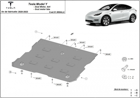 Proteção frontal do motor elétrico em alumínio para Tesla model Y (2020-2023)