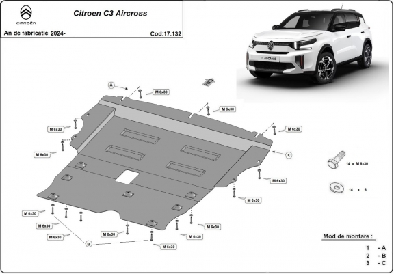 Protetor de Carter de aço Citroen C3 Aircross (2024-2026)