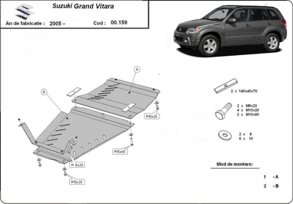 Protetores de cárter em Aço para a proteção do caixa de velocidades, caixa de transferência The skid plate is new and fits perfectly for all versions of Suzuki Grand Vitara 2 manufactured between 2005 and 2019. Os nossos protetores de cárter são feitos com chapas de aço com 3 mm de espessura com pintura eletrostática. Entregue com todos os acessórios necessários (parafusos, porcas, grampos). Todas os protetores de cárter possuem um revestimento em pó para impedir a corrosão. |