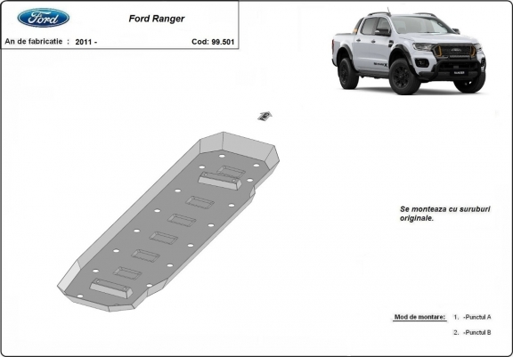 Protetores de cárter em Aço para a proteção do depósito de combustível The skid plate is new and fits perfectly for all versions of Ford Ranger manufactured between 2011 and 2023. Os nossos protetores de cárter são feitos com chapas de aço com 2 mm de espessura com pintura eletrostática. Entregue com todos os acessórios necessários (parafusos, porcas, grampos). Todas os protetores de cárter possuem um revestimento em pó para impedir a corrosão. |