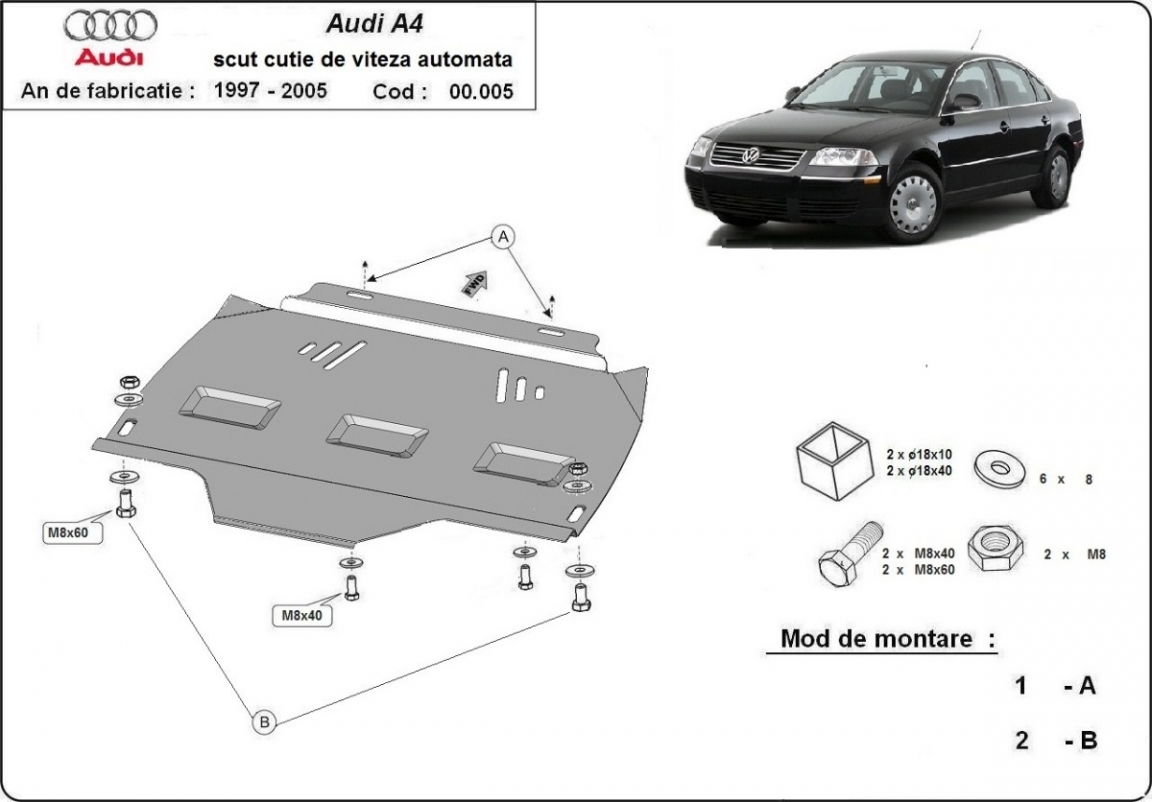 Protetor de caixa de velocidades automática de aço VW Passat B5, B5.5 (1997-2005)