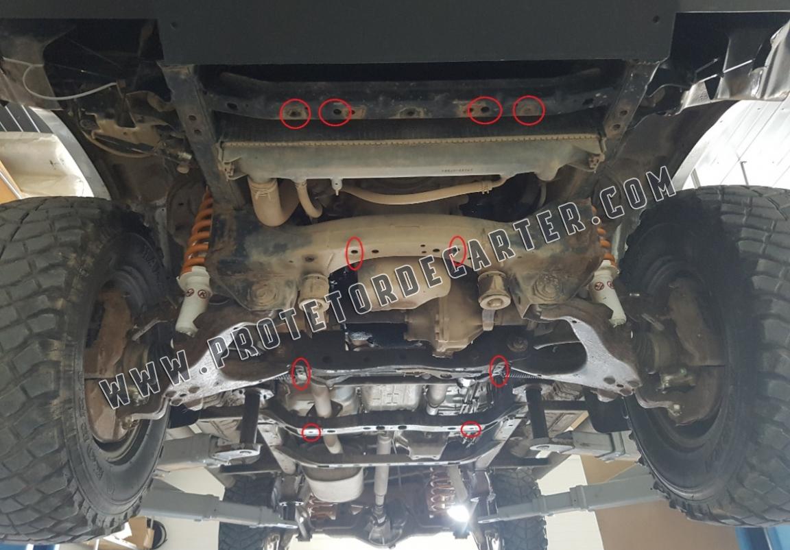 Protetores de cárter em Aço para a proteção do caixa de velocidades The skid plate is new and fits perfectly for all versions of Toyota Land Cruiser J90 manufactured between 1995 and 2002. Os nossos protetores de cárter são feitos com chapas de aço com 2.5 mm de espessura com pintura eletrostática. Entregue com todos os acessórios necessários (parafusos, porcas, grampos). Todas os protetores de cárter possuem um revestimento em pó para impedir a corrosão. |