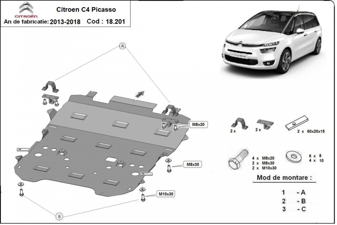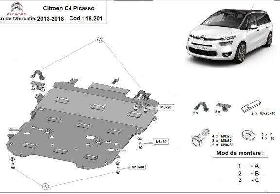 Protetor de Carter de aço Citroen C4 Picasso (2013-2018)