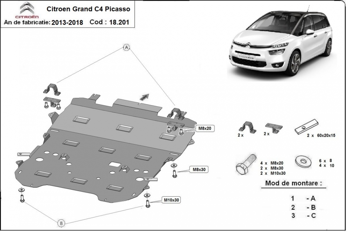 Protetor de Carter de aço Citroen C4 Picasso (2013-2018)