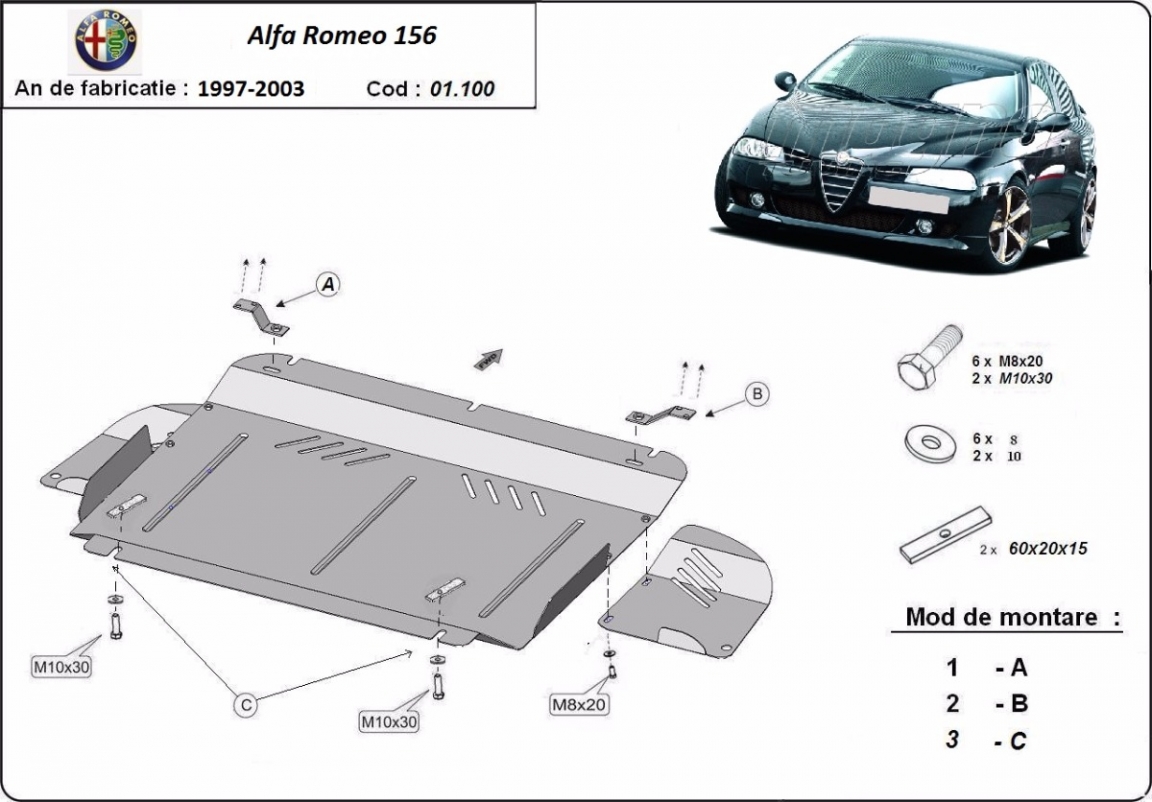 Protetor de Carter de aço Alfa Romeo 156 (1997-2003)