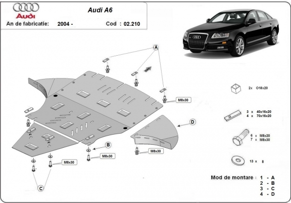 Protetor de Carter de aço Audi A6 com abas laterais (2004-2011)