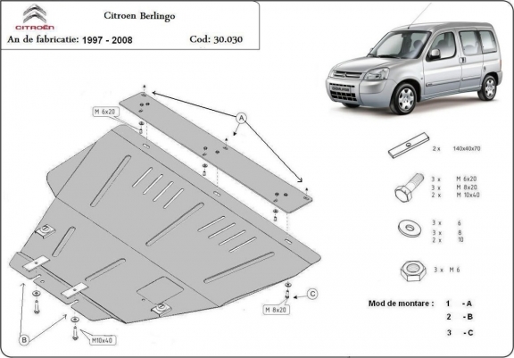 Protetor de Carter de aço Citroen Berlingo (1997-2008)