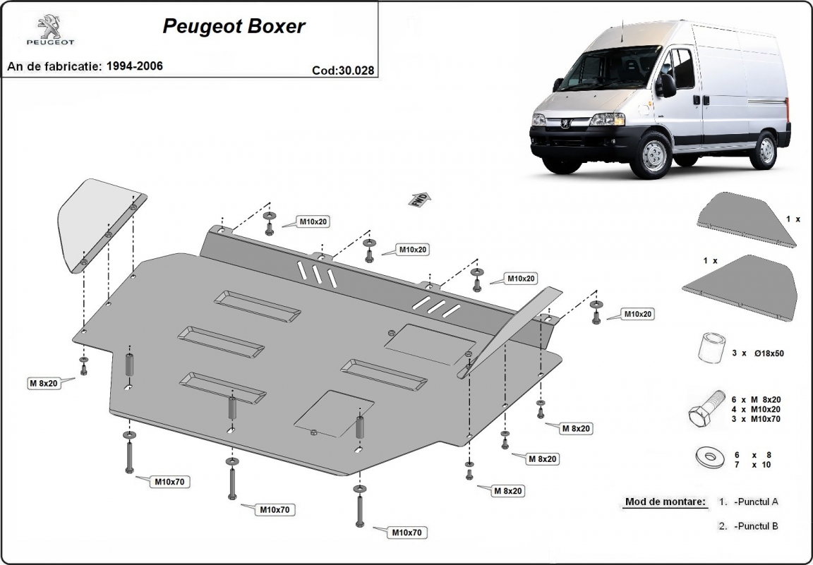 The skid plate is new and fits perfectly for all versions of Peugeot Boxer manufactured between 1996 and 2006.