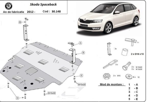 Protetor de Carter de aço Skoda Spaceback (2013-2019)