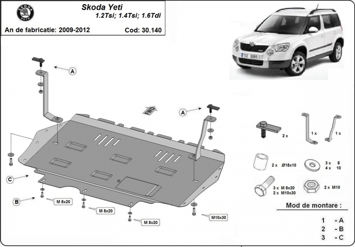 Protetor de Carter de aço Skoda Yeti (2009-2012)