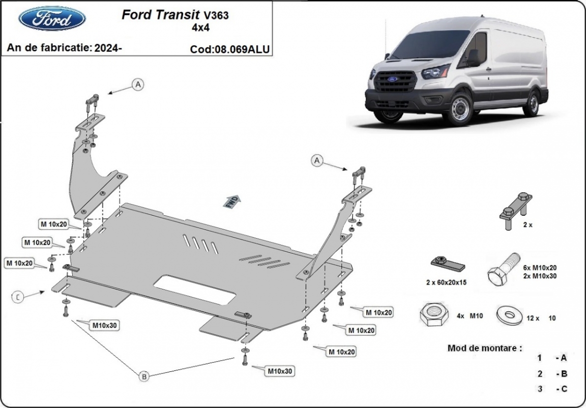 Protetor de Carter de alumínio Ford Transit V363 4x4 (2024-2026)