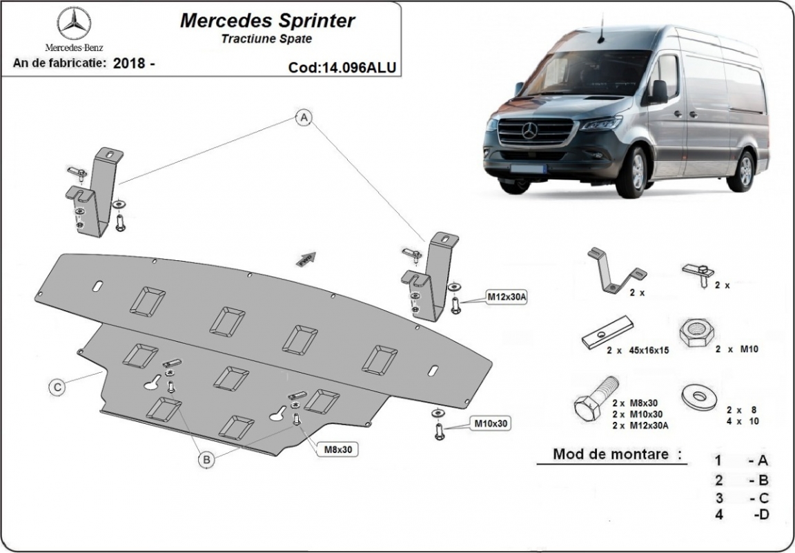 Protetor de Carter de alumínio Mercedes Sprinter - RWD (2018-2026)
