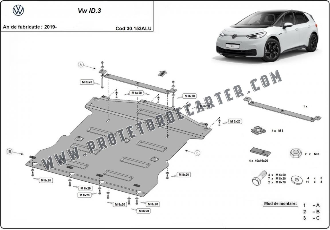 Protetor de Carter de alumínio Volkswagen ID.3 (2019-2025)