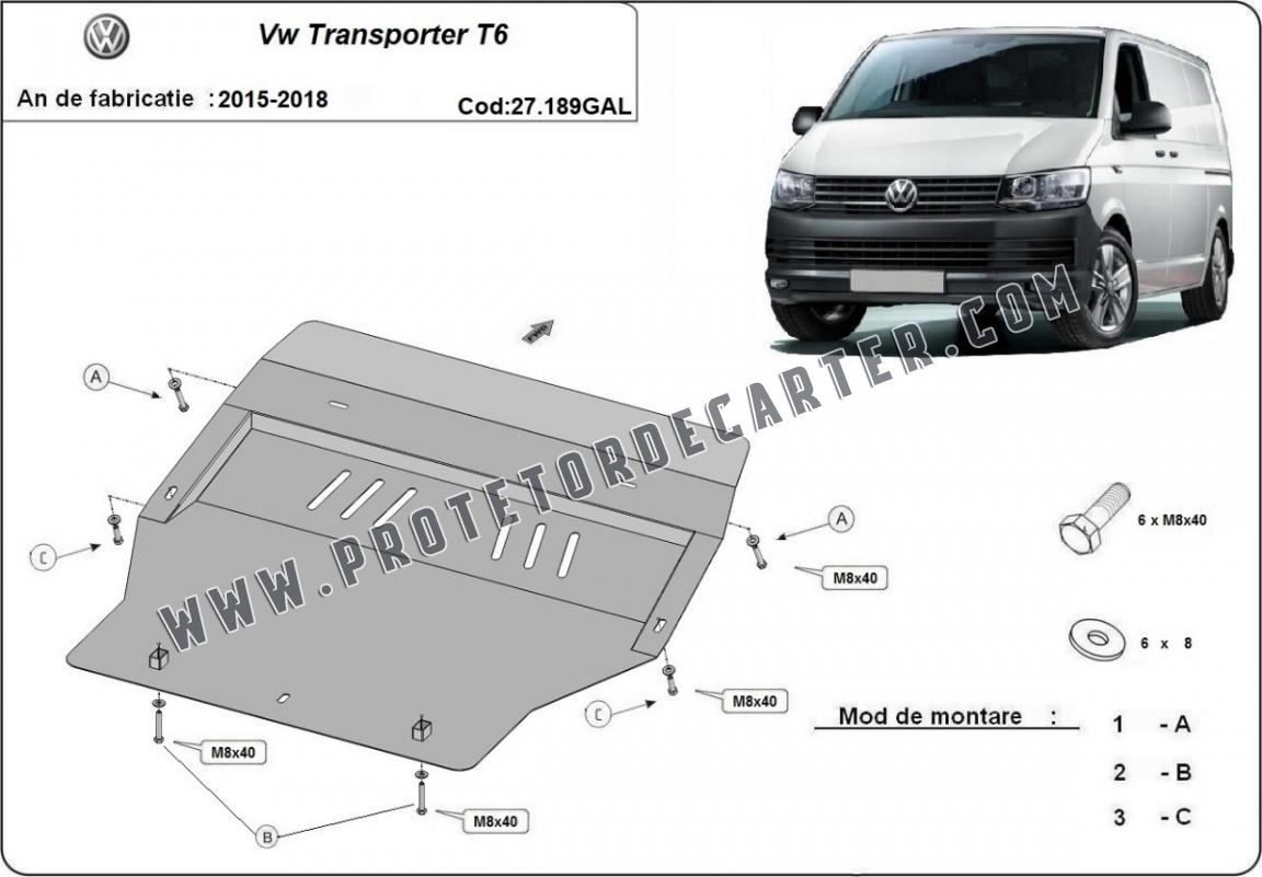 Protetor de Carter de aço galvanizado Volkswagen Transporter T6 (2015-2018)