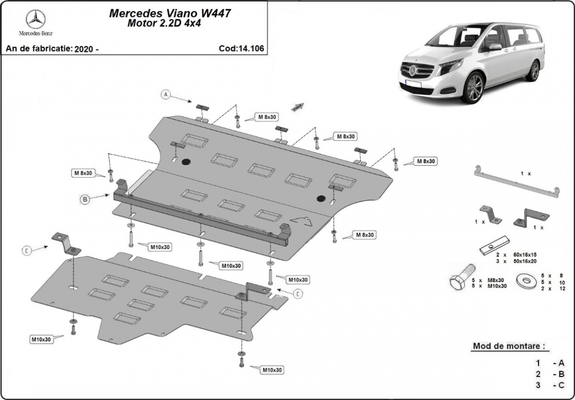 Protetor de Carter de aço Mercedes Viano W447, 2.2 D, 4x4 (2020-2026)