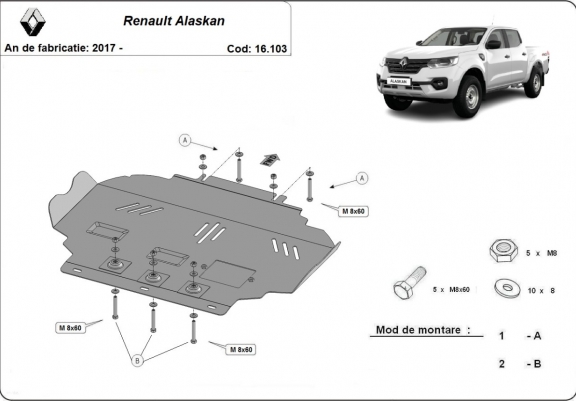 Protetores de cárter em Aço para a proteção do motor The skid plate is new and fits perfectly for all versions of Renault Alaskan manufactured between 2017 and 2026. Os nossos protetores de cárter são feitos com chapas de aço com 2.5 mm de espessura com pintura eletrostática. Entregue com todos os acessórios necessários (parafusos, porcas, grampos). Todas os protetores de cárter possuem um revestimento em pó para impedir a corrosão. |