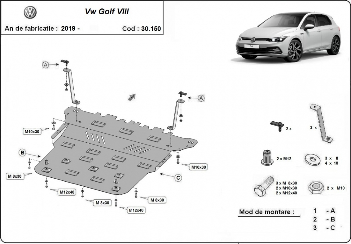 Protetor de Carter de aço VW Golf 8 (2019-2026)