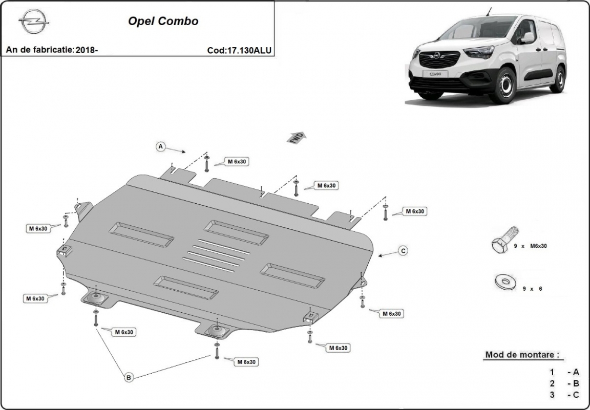 Protetor de Carter de Alumínio Opel Combo E (2018-2026)