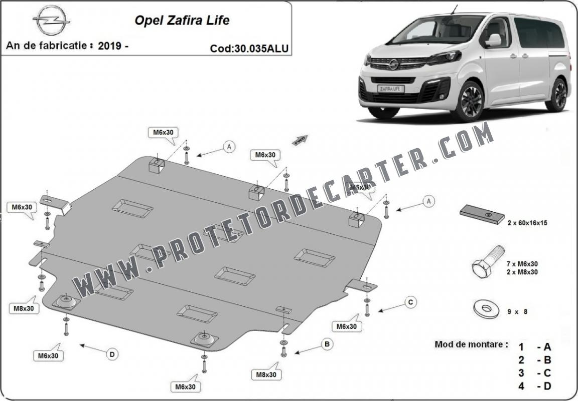 Protetor de Carter de Alumínio Opel Zafira Life (2019-2026)