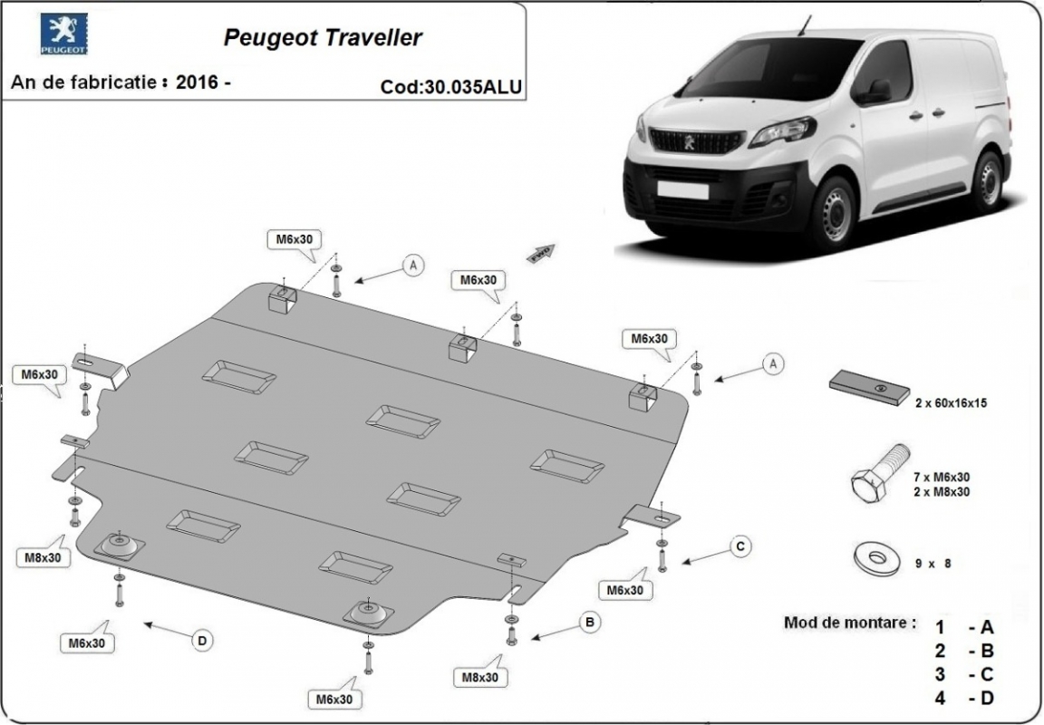 Protetores de cárter em Alumínio para a proteção do motor, caixa de velocidades, radiador The skid plate is new and fits perfectly for all versions of Peugeot Traveller manufactured between 2016 and 2026. Os nossos protetores de cárter são feitos com chapas de aço com 3 mm de espessura com pintura eletrostática. Os escudos são de alumínio, mas os suportes de fixação são de aço. Entregue com todos os acessórios necessários (parafusos, porcas, grampos). Todas os protetores de cárter possuem um revestimento em pó para impedir a corrosão. |