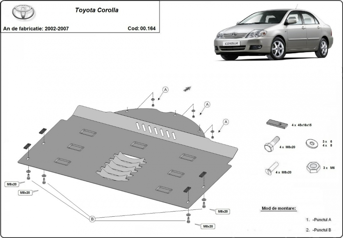 Protetores de cárter em Aço para a proteção do Conversor catalítico The skid plate is new and fits perfectly for all versions of Toyota Corolla manufactured between 2002 and 2007. Os nossos protetores de cárter são feitos com chapas de aço com 2 mm de espessura com pintura eletrostática. Entregue com todos os acessórios necessários (parafusos, porcas, grampos). Todas os protetores de cárter possuem um revestimento em pó para impedir a corrosão. |
