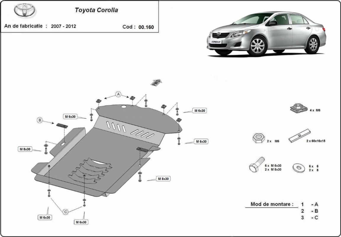 Protetores de cárter em Aço para a proteção do Conversor catalítico The skid plate is new and fits perfectly for all versions of Toyota Corolla manufactured between 2007 and 2012. Os nossos protetores de cárter são feitos com chapas de aço com 2 mm de espessura com pintura eletrostática. Entregue com todos os acessórios necessários (parafusos, porcas, grampos). Todas os protetores de cárter possuem um revestimento em pó para impedir a corrosão. |