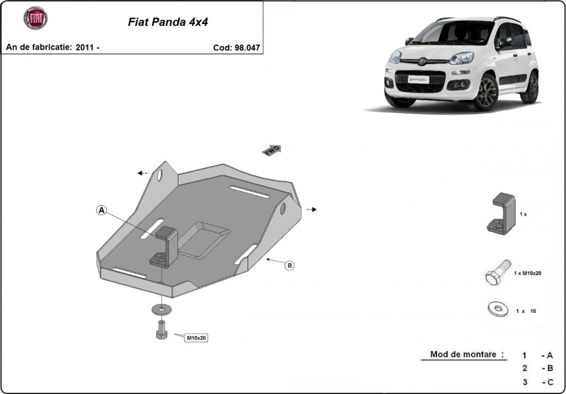The skid plate is new and fits perfectly for all versions of Fiat Panda 4x4 manufactured between 2011 and 2026.