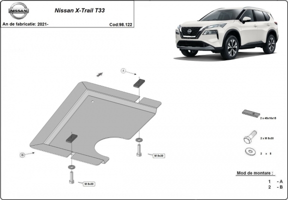 Protetores de cárter em Aço para a proteção do rear diferencial The skid plate is new and fits perfectly for all versions of Nissan X Trail manufactured between 2021 and 2026. Os nossos protetores de cárter são feitos com chapas de aço com 2 mm de espessura com pintura eletrostática. Entregue com todos os acessórios necessários (parafusos, porcas, grampos). Todas os protetores de cárter possuem um revestimento em pó para impedir a corrosão. |